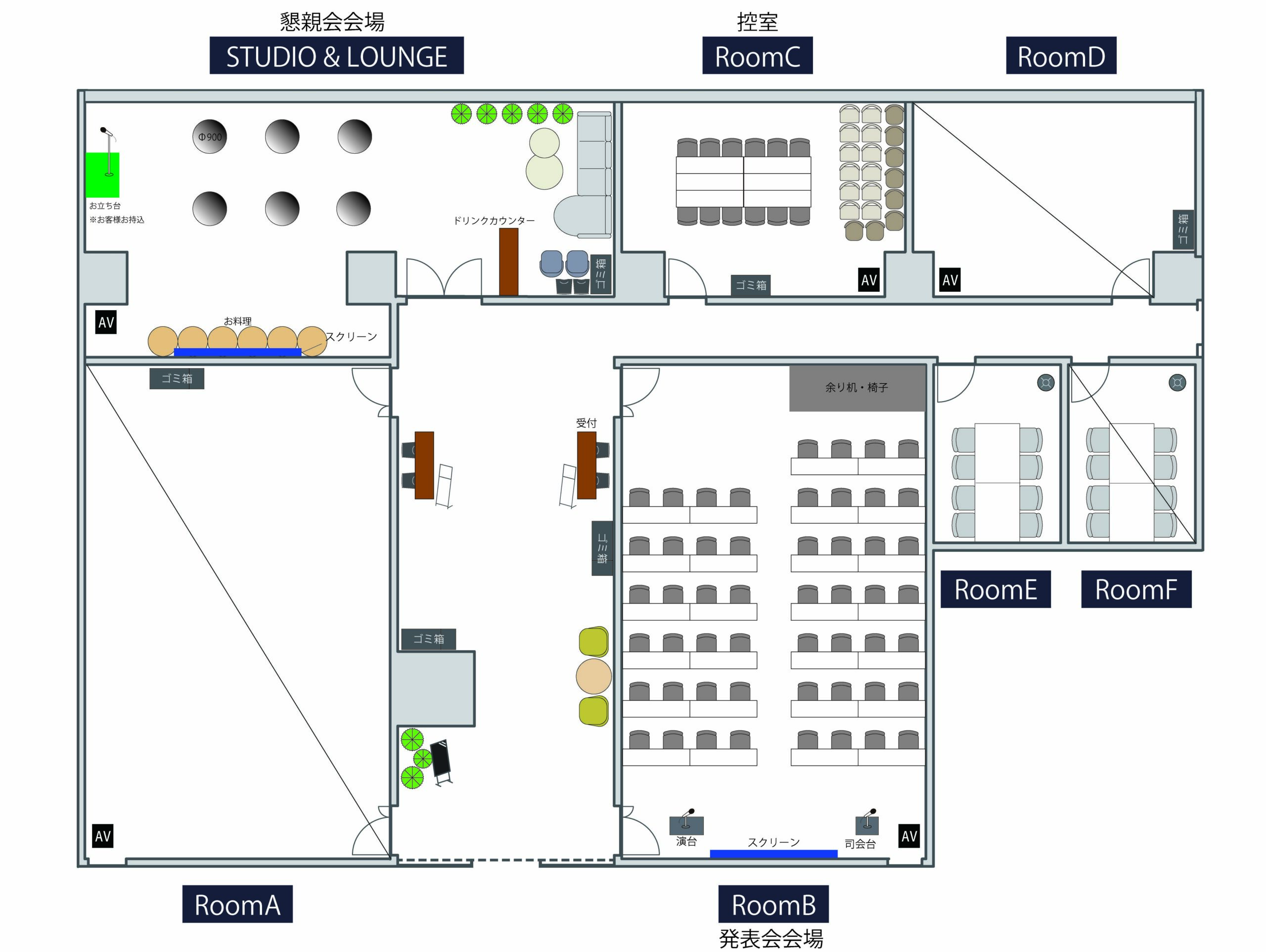 会場図面や備品表などをPDFでご用意しております。